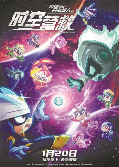 1月20日将上映的《开心超人之时空营救》由广东明星创意动画有限公司出品,是《喜羊羊与灰太狼之筐出未来》的导演黄伟明的又一力作。自2010年首播以来,已经持续播出19季超过1300集动画剧集以及3部动画电影,“开心超人”已成为一代年轻人的童年回忆,并且仍在不断吸引新的粉丝。