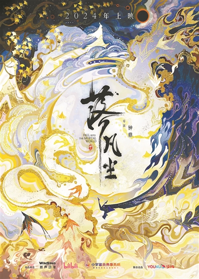 2020年,短片《落凡尘》在B站引发网友追捧,被称为“最牛毕设”。2024年,由广东咏声动漫股份有限公司打造的大电影《落凡尘》将与观众见面。从剧本打磨到视觉呈现,五年磨一剑,制作团队投入了大量的精力,更有大量技术创新,全片有超过1600个特效镜头。这部影片取材于中国传统文化及民间故事,以织女舍弃仙籍坠落凡间为因,讲述了牛郎织女后代的故事,通过二十八星宿等极具特色的文化符号讲述中国故事。导演钟鼎表示:“‘家’是每个中国人最难以割舍的情怀,《落凡尘》通过国人最容易产生共鸣的亲情故事,表达了主人公对家的守护及传承,感人至深。”