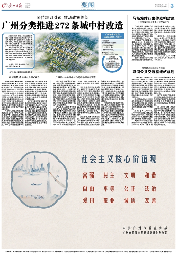 - 广州分类推进272条城中村改造 2023年12月中旬,《白云区鹤龙街黄边村更新改造项目挂牌公告》在广州公共资源交易中心网站发布,正式启动招商工作。改造后,黄边村将从居住环境不友好、设施配建不足的城中村变身广州设计之都的重点片区