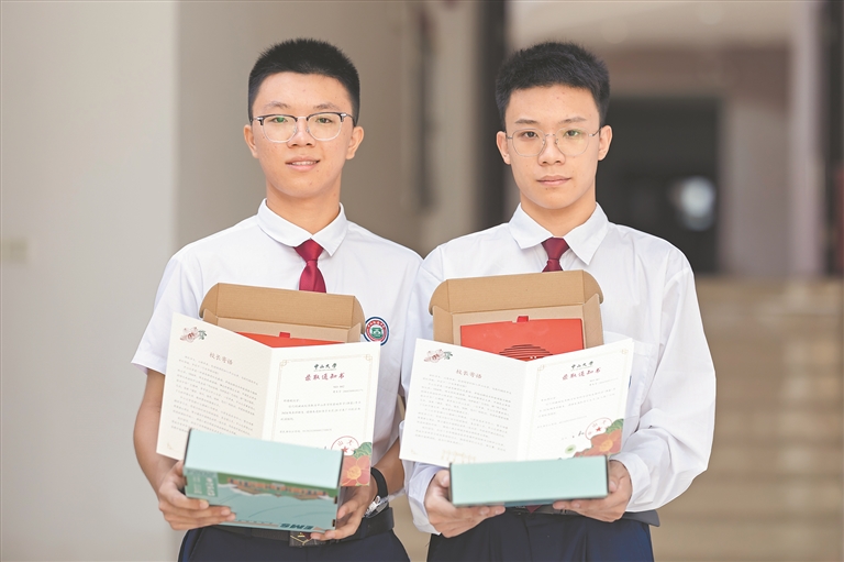 2024年广东高考招录正在进行中,有一批人已率先收到录取通知书。昨日,2024年中山大学首封录取通知书颁发仪式在中山纪念中学举行。该校优秀学子李尚儒同学和邓博棱同学分别获颁001号和002号录取通知书。