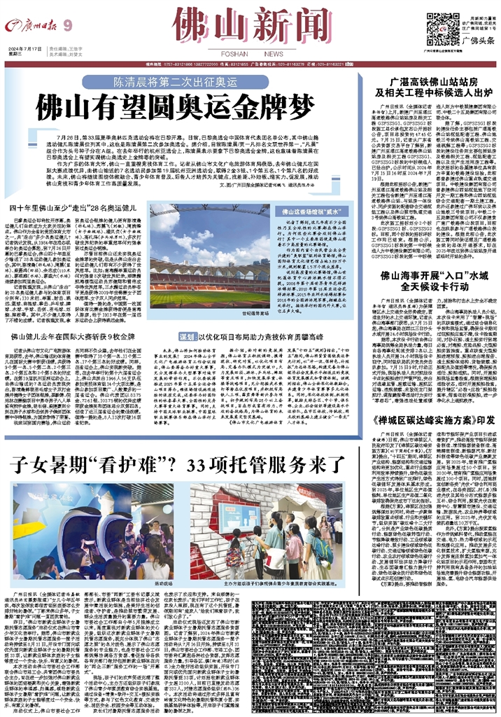 - 佛山有望圆奥运金牌梦 7月26日,第33届夏季奥林匹克运动会将在巴黎开幕。日前,巴黎奥运会中国体育代表团名单公布,其中佛山籍运动健儿陈清晨位列其中,这也是陈清晨第二次参加奥运会。据介绍,目前陈清晨/贾一凡排名女双世界第