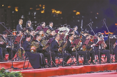 珠江之畔,广州塔下,华章奏响。宛转悠扬的曲调,叠起叠落的音浪……随着国家一级指挥、中国人民解放军军乐团常任指挥张治荣执棒引领的《山岳畅想》旋律响起,现场观众宛若亲身走进秀美山川,整场音乐会正式拉开序幕。