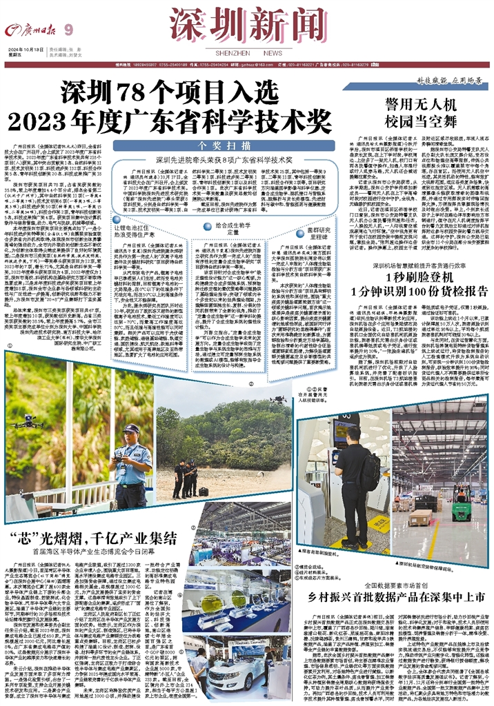 - 深圳78个项目入选2023年度广东省科学技术奖 广州日报讯 (全媒体记者阮元元)昨日,全省科技大会在广州召开,会上颁发了2023年度广东省科学技术奖。2023年度广东省科学技术奖共有218个项目(人)获奖,其中突出贡献奖1名、自然科学奖31项