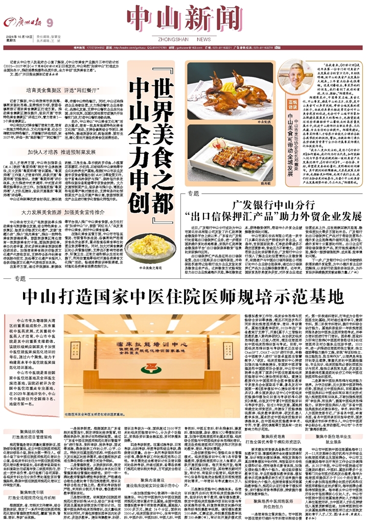 - 中山打造国家中医住院医师规培示范基地 中山市作为粤港澳大湾区的重要组成部分,历来重视中医药发展,尤其重视中医药人才培育,中山市中医院是其中的重要支撑载体,该院积极响应国家关于加强中医住院医师规范化培训的号召,通过六个聚焦,致力于构建