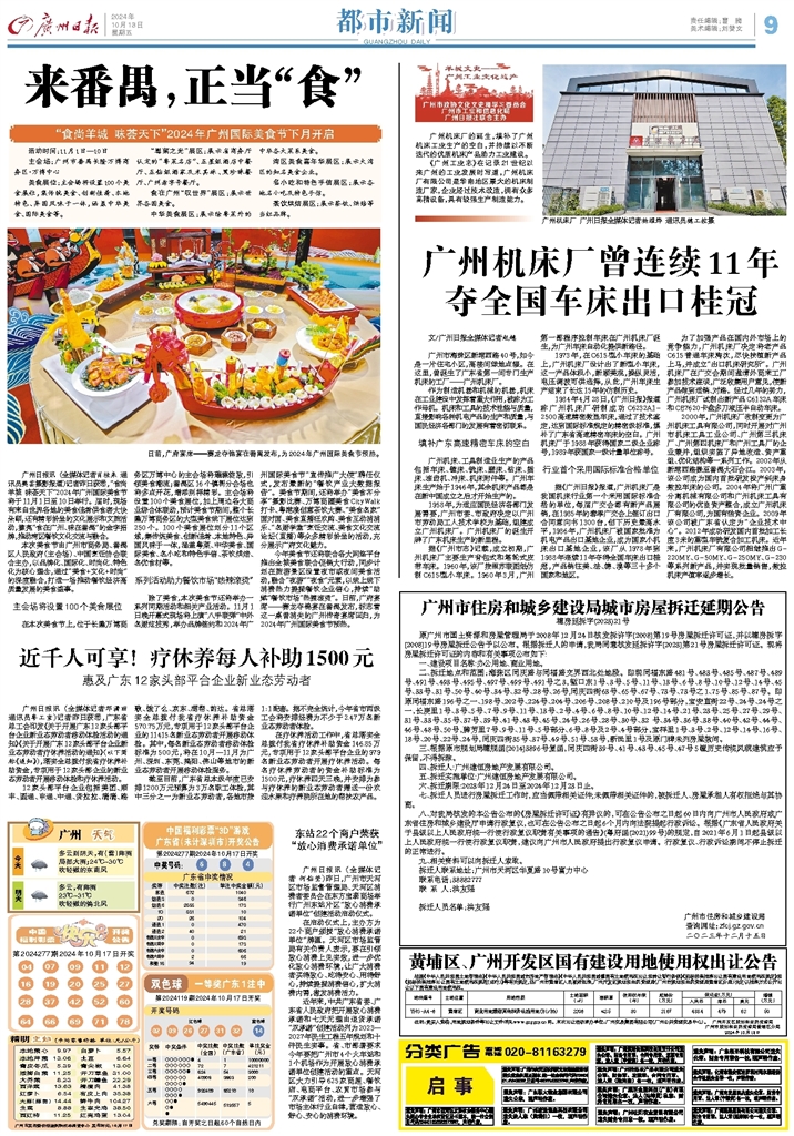 广州日报 都市新闻 A9 2024-10-181 2024年10月18日 星期五
