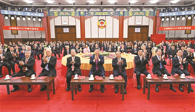 茶话会由中共中央政治局常委、全国政协主席王沪宁主持。他指出,要认真学习贯彻习近平总书记重要讲话精神,毫不动摇坚持中国共产党的全面领导,牢牢把握人民政协性质定位,坚持围绕中心、服务大局,以改革创新精神推进履职能力建设,坚定信心、团结奋进,为全面完成2025年我国经济社会发展目标任务广泛凝心聚力,为以中国式现代化全面推进强国建设、民族复兴伟业而不懈奋斗。
