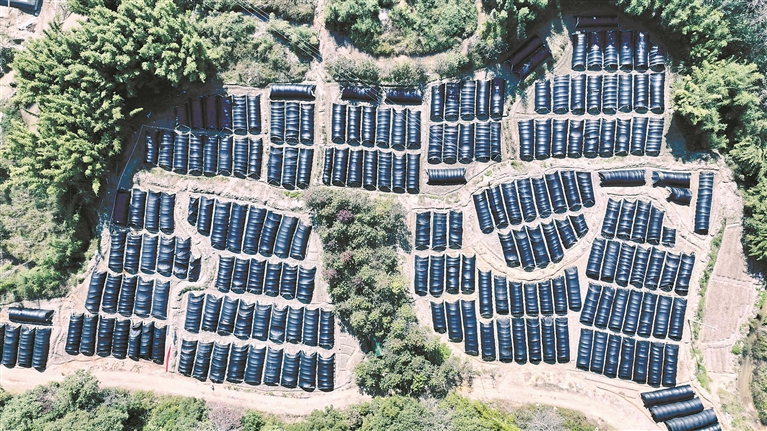 稻菇轮作是“双百行动”高校技术帮扶的结晶。人们巧妙地将水稻与大球盖菇的种植周期相结合,送走九月满地稻香后,广袤的土地经过一番精心整理,十月便迎来了菌种的播种。棚膜之下,冬闲田变身成了生产大球盖菇的温床。来年四月,当赤松茸完成使命,其基质土又化作滋养水稻的沃土,循环往复,生生不息。