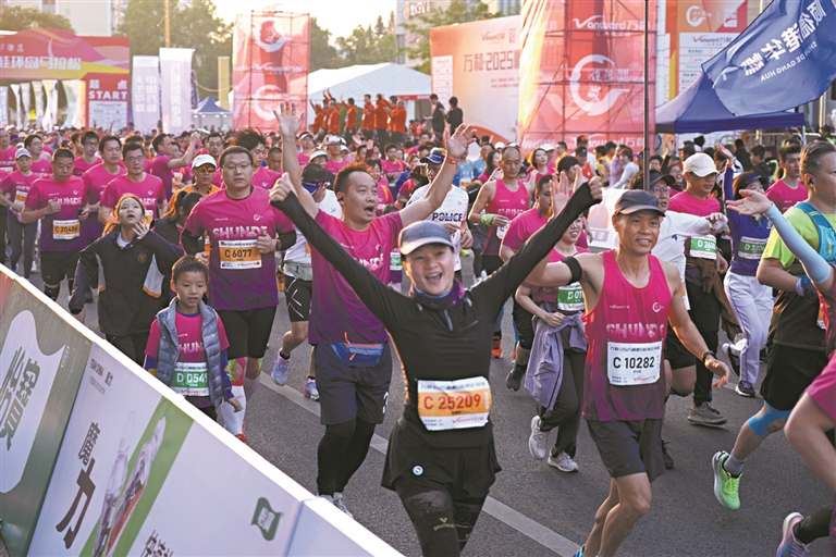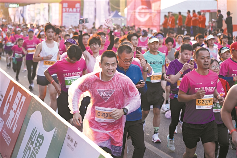超万人环岛追光,元气满满奔赴新征程。昨日上午7时30分,顺德容桂环岛马拉松(以下简称“顺德容马”)在容桂街道燃情起跑。作为2025年广东首场A1认证的马拉松赛事,来自国内外的1.5万名跑者齐聚顺德容桂,迎着朝阳,一同“跑遍”美食名镇、“穿越”工业名城、“奔向”新年愿景,感受水兴文荟,亲水智城的容桂魅力。