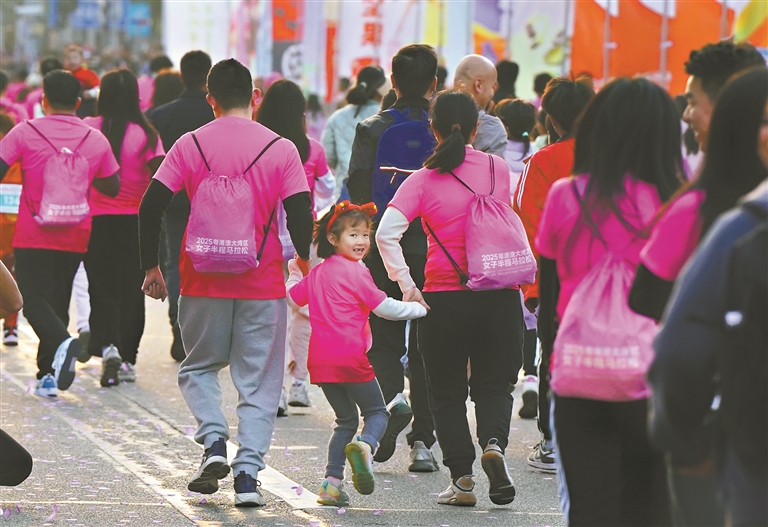 同一天,2025粤港澳大湾区女子半程马拉松在广州市增城区增城广场鸣枪开跑,2万名来自不同国家和地区的跑者一路领略圣皇洲的风情、樱花园的浪漫、荔湖公园的秀丽、增江画廊的壮丽、万寿禅寺的庄严,主办方还为选手们准备了一系列贴心服务,赛事现场设有美妆妆造区、生日礼遇区、美丽修复专区等多个功能区,更有起跑仪式粉色花瓣礼。