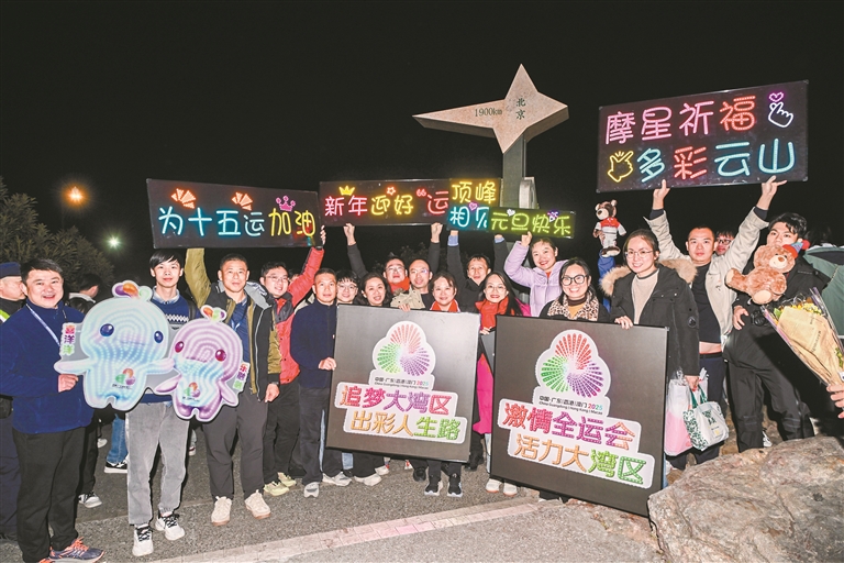 倡导健康生活方式,运动迎接新年阳光。1日上午,一场特别的登高健康行活动在白云山风景区内的摩星岭展开。上百名游客身着便装,踢毽子、投掷飞镖,在笑声中感受到了运动的乐趣。摩星岭步道登顶入口,第十五届全国运动会开幕倒计时灯牌正式点亮。从黄河石广场到摩星岭顶峰,全运会元素无处不在,景区精心布置了宣传展板详细介绍全运会的历史,展示会徽、吉祥物和主题口号。