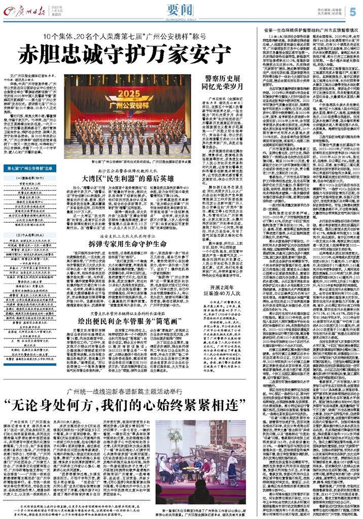 - 赤胆忠诚守护万家安宁 文/广州日报全媒体记者张丹羊、叶作林 通讯员公新文 昨晚,中共广州市委宣传部、广州市公安局在白云国际会议中心世纪大会堂联合举办“擎旗奋进新征程”广州市庆祝2025年中国人民警察节暨“英雄花