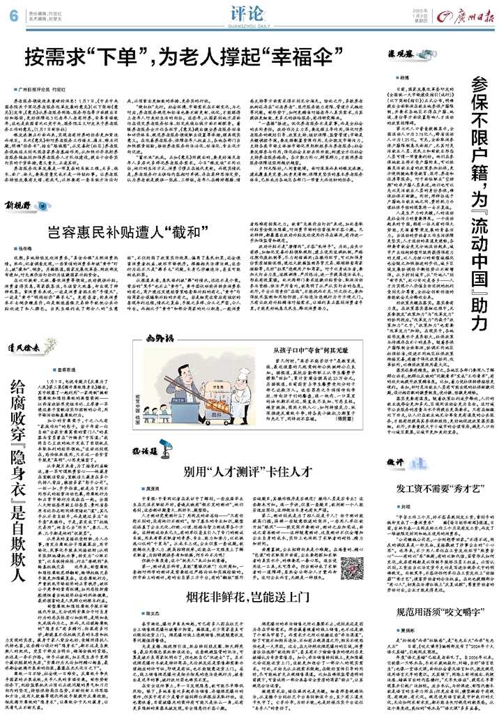 - 按需求“下单”,为老人撑起“幸福伞” 广州日报评论员 付迎红 养老服务领域迎来重磅好消息!1月7日,《中共中央 国务院关于深化养老服务改革发展的意见》(以下简称《意见》)发布。《意见》从养老服务网络、服务形态等方面提出目标和路径,
