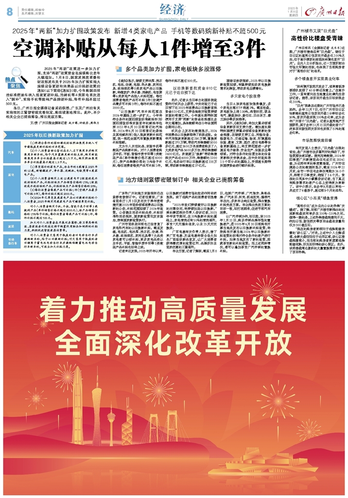 热点聚焦 2025年“两新”政策进一步加力扩围,支持“两新”政策资金总规模将比去年大幅增加。1月8日,国家发展改革委和财政部发布关于2025年加力扩围实施大规模设备更新和消费品以旧换新政策