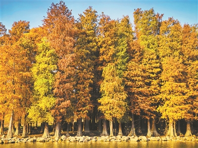 近年来,顺德积极推动“以水兴城”战略,河湖水质大有改善,这为落羽杉提供了良好的生长环境。每到深秋、隆冬之际,湖畔、河岸、水道上,目之所及,落羽杉林郁郁葱葱,成为绿美顺德、绿美佛山的生动注脚。