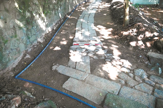广州日报讯 (全媒体记者卜松竹 通讯员胡金、余惠红)近日,在第四次全国文物普查工作中,考古研究人员通过考古调查勘探,在玉岩书院发现一条长约80米,宽0.85米,由3—4排麻石铺就的道路,并蜿蜒向山门延伸,初步推断为清代登山古道。