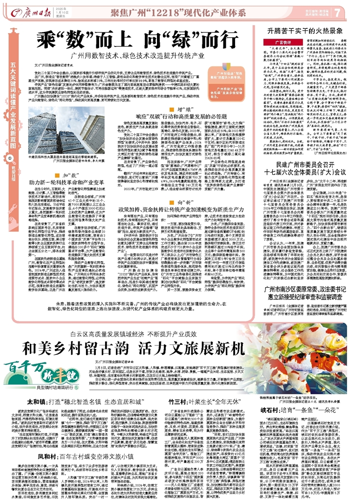 - 和美乡村留古韵 活力文旅展新机 文/广州日报全媒体记者汤南 1月8日,记者走进广州市白云区太和镇、人和镇、钟落潭镇、江高镇,实地调研“百千万工程”典型镇村培育建设。无论是圩镇乡村、项目园区,还是主次干道,所到之处路宽、地