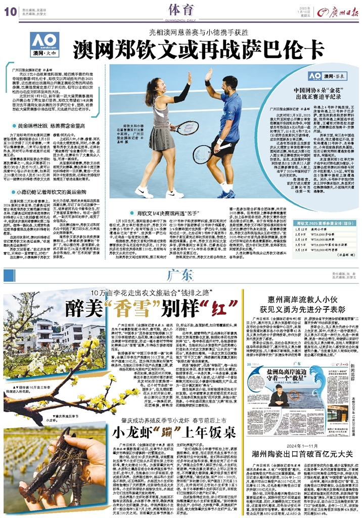 - 澳网郑钦文或再战萨巴伦卡 澳网·大咖 广州日报全媒体记者 孙嘉晖 先以2比0击败斯维托丽娜,随后携手德约科维奇险胜穆雷/阿扎伦卡,郑钦文以两场胜利开启2025赛季,这也是她出战澳网公开赛正赛前仅有的两场热身赛