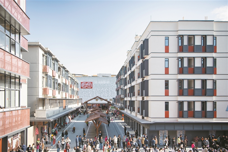 昨日上午,广受关注的全省首例业主“自主更新、自筹资金、原拆原建”危旧房改造项目——花都区集群街2号正式验收交房交证。图为改造后的集群街区。广州日报全媒体记者李波 摄