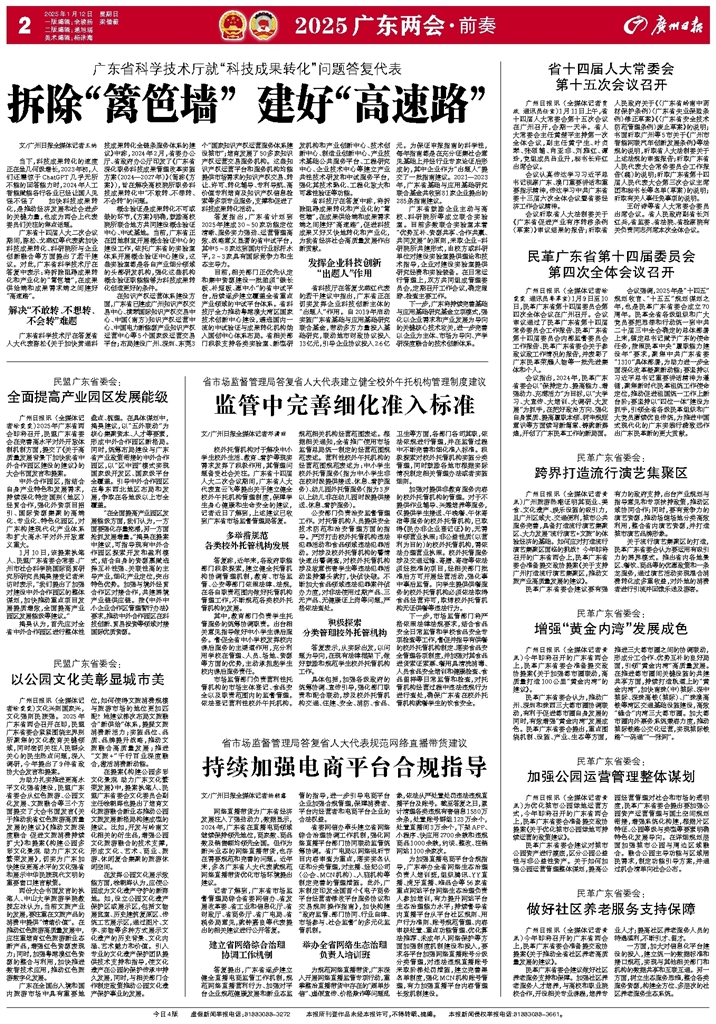 广东省十四届人大二次会议期间,陈松、戈燕红等代表就加快科技成果转化、科研院所与企业创新融合等方面提出了若干建议。对此,广东省科学技术厅在答复中表示:将拆除阻碍成果转化和产业化的“篱笆墙”,在成果供给端和成果需求端之间建好“高速路”。