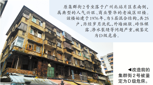 “集群街2号危房拆建项目为广州‘老屋新生’探路。广州危旧房原拆原建有很大市场需求和存量规模。大量建成年代久远的城镇住房,因为建设标准低、年久失修,出现严重安全隐患问题,迫切需要改造升级。集群街2号拆除重建试点的成功,率先探路破局,为广州探索危旧房改造新模式开了个好头,为以‘小切口’推动广州城市更新‘大变化’,提升居住品质、改善城市面貌、扩内需促消费提供了有益参考。”广州市住房和城乡建设局相关负责人表示。