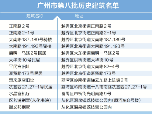 广州日报讯 (全媒体记者杜娟)近日,广州市第八批历史建筑名单正式公布,正南路2号等13处建筑物入选。本次入选的历史建筑越秀区最多,共8处;此外,还包括荔湾区2处,从化区2处,番禺区1处。番禺入选的建筑物为位于市桥街光明南路9号的水晶宫船厅,是番禺区少有的园林式建筑。