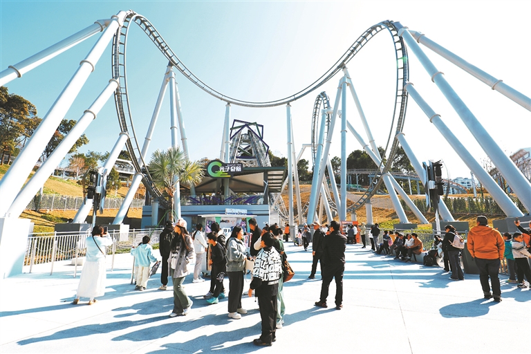 种种精彩玩法让游客倍感惊喜。不少游客拿出手机,记录下这难忘的瞬间。有游客表示,改造后的南湖乐园与之前截然不同,整体氛围特别科幻带感,互动体验非常有趣。