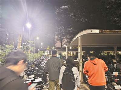 记者日前也到官洲地铁站现场查看,走出A口就能看到该停放点。下午6时20分,天色渐渐黑了,由于停车点画线部分有遮阳棚,光线确实会更暗;到了晚上8时记者发现,围绕着这个停放点的照明灯开了,现场非常亮堂,无论是行人还是骑车的市民都分外从容,没了此前“摸黑”前行的忐忑。