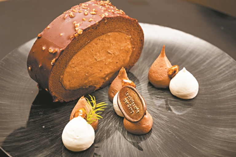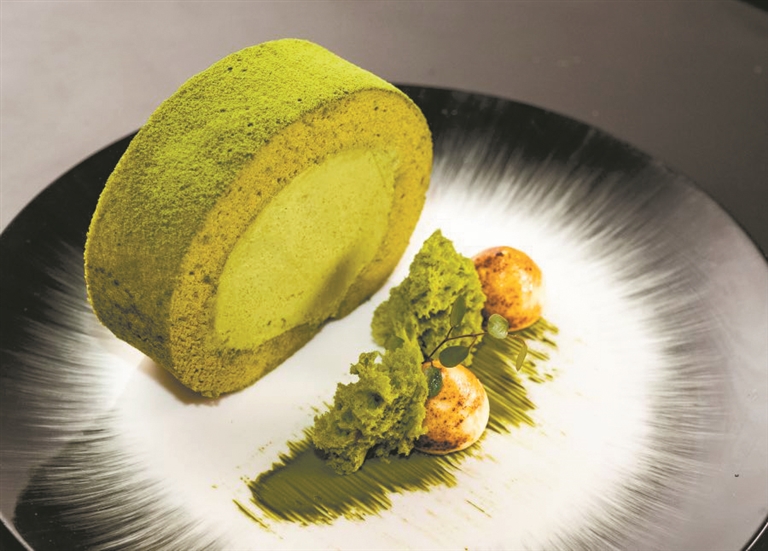 抹茶蛋糕卷、巧克力蛋糕卷,是下午茶的经典美味元素。颖琪说,他们在广州开店做鲜果蛋糕卷已经12年了,宇治抹茶蛋糕卷是他们家的常规款,抹茶的香浓与蛋糕的香甜相互交织,形成了一种独特又不失清新的风味。