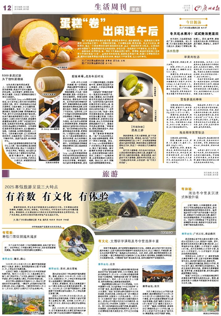 - 蛋糕“卷”出闲适午后 在广州这座四季如春的城市里,即使是冬季午后,依旧暖阳照人。在繁忙的生活节奏中,不如给自己按下一个温馨的暂停键。户外暖阳高照、微风轻飘。约上三五好友,伴阳而坐,喝上一口温热香浓的咖啡或清新的花茶,品