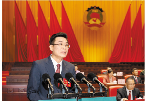 林克庆代表政协第十三届广东省委员会常务委员会向大会报告工作。2024年,省政协常委会深入学习贯彻中共二十大和二十届二中、三中全会精神,学思践悟习近平总书记在庆祝人民政协成立75周年大会上的重要讲话精神,始终在大局下思考和行动,紧紧围绕省委“1310”具体部署,突出聚焦走在前列同心奋进,突出聚焦改革开放建言资政,突出聚焦中心大局履职尽责,人民政协工作展现新担当新作为。报告从六个方面总结了省政协去年的工作。一是深刻把握人民政协政治属性,为强化人民政协显著政治优势筑牢根基;二是深刻把握粤港澳大湾区“一点两地”全新定位,为进一步全面深化改革凝聚智慧力量;三是深刻把握新质生产力的内涵特征,为经济大省挑大梁凝聚智慧力量;四是深刻把握“百县千镇万村高质量发展工程”的目标任务,为促进城乡区域协调发展凝聚智慧力量;五是深刻把握团结和民主两大主题,为完善大统战格局注入新的生机活力;六是深刻把握为国履职为民尽责的使命担当,为充分彰显新时代委员风采创造条件。