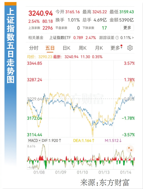 广州日报讯 (全媒体记者林晓丽)昨日,A股全天高开高走,沪指收复3200点关口,深证成指站上万点大关,北证50指数涨超10%。截至收盘,沪指涨2.54%,深成指涨3.77%,创业板指涨4.71%。A股全天成交额13720亿元,较上个交易日放量3958亿元。个股普涨,全市场超5300只个股上涨,上涨个股家数创去年10月8日以来新高。板块方面,人形机器人、互联网金融等板块涨幅居前,无下跌板块。