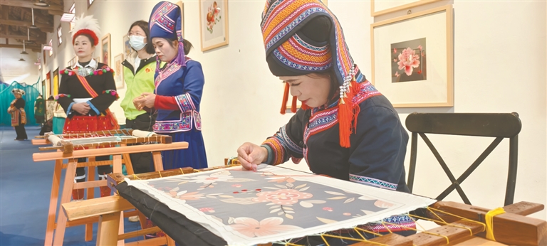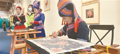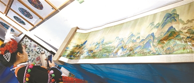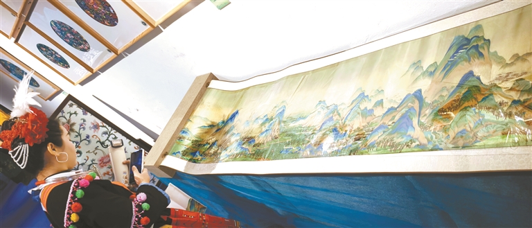 日前,瑶绣图腾马头纹与名画《千里江山图》相结合的刺绣长卷亮相清远市民族刺绣展,展现了清远推动“三万绣娘入链计划”,探索传统工艺的创造性转化和文旅融合发展的实践成果。