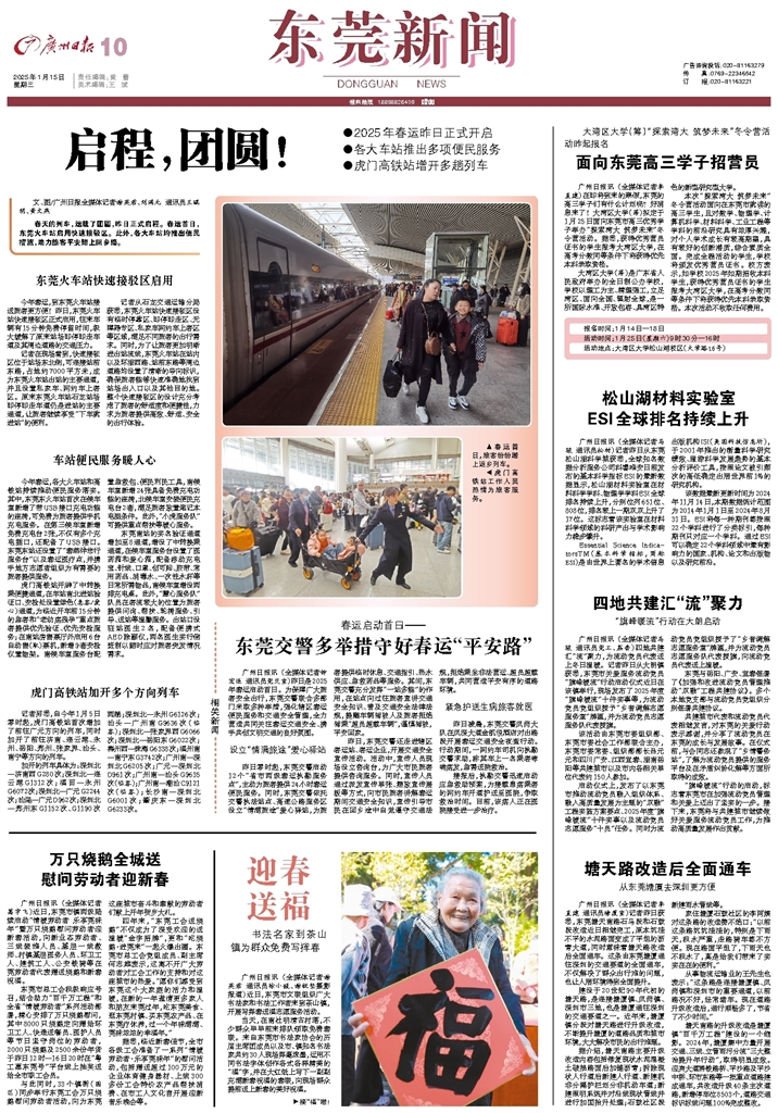 - 启程,团圆! 文、图/广州日报全媒体记者谢英君、刘满元 通讯员王琨玥、黄文燕 春天的列车,运载了团圆,昨日正式启程。春运首日,东莞火车站启用快速接驳区。此外,各大车站均推出便民措施,助力旅客平安踏上回乡路。