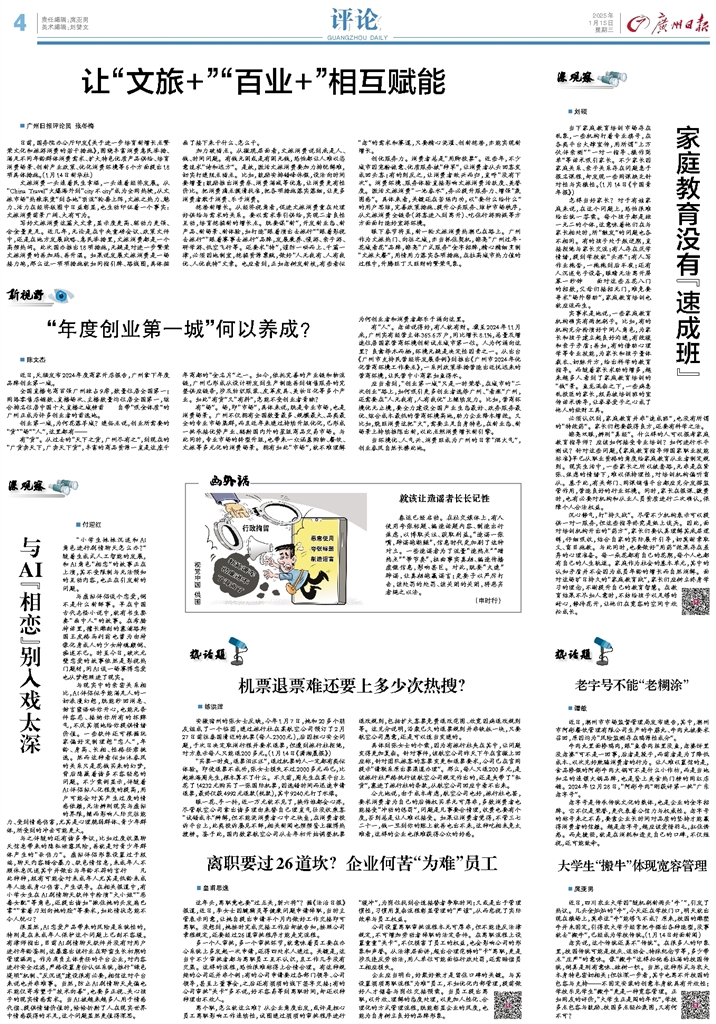 - 让“文旅+”“百业+”相互赋能 广州日报评论员 张冬梅 日前,国务院办公厅印发《关于进一步培育新增长点繁荣文化和旅游消费的若干措施》,围绕丰富消费惠民举措、满足不同年龄群体消费需求、扩大特色优质产品供给、培育消费场景、创新产