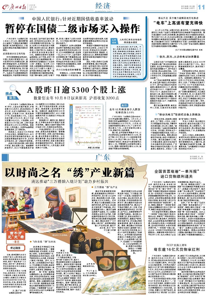 - 以时尚之名 “绣”产业新篇 日前,瑶绣图腾马头纹与名画《千里江山图》相结合的刺绣长卷亮相清远市民族刺绣展,展现了清远推动“三万绣娘入链计划”,探索传统工艺的创造性转化和文旅融合发展的实践成果。 本次展览共展出128幅