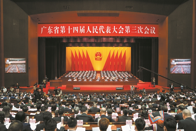 广州日报讯 (全媒体记者贾政、魏丽娜、侯翔宇、杨朝露、刘春林、王纳 通讯员任宣)昨日上午,广东省第十四届人民代表大会第三次会议在广州白云国际会议中心世纪大会堂开幕。