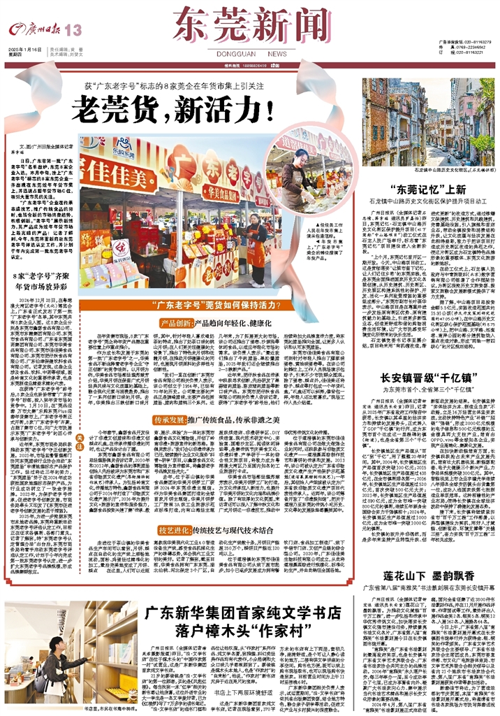 - 老莞货,新活力! 文、图/广州日报全媒体记者蒋幸端 日前,广东省第一批“广东老字号”名单出炉,东莞8家企业入选。本月中旬,挂上“广东老字号”标志的8家东莞企业一齐出现在东莞蛇年年货市集上,并迅速占据年货市场