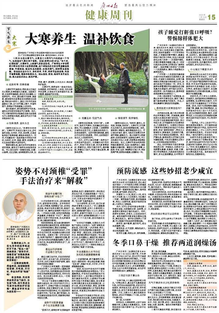 - 冬季口鼻干燥 推荐两道润燥汤 广州日报讯 (全媒体记者吴婉虹 通讯员徐心怡)近日久晴不雨,干冷持续,在广州的儿科门诊,因为天气干燥诱发不适症状的患者也有所增多。广州医科大学附属中医医院儿科主任石艳红主任中医师提醒,如果孩子最近