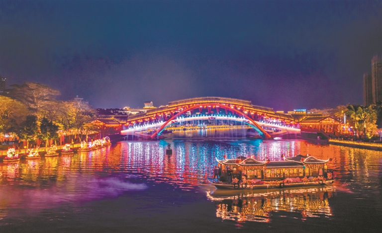 水陆联动,精彩表演轮番上演。白天,非遗鱼灯、四喜财神、祈福金龙、市民才艺等组成的特色方阵带来特色巡游表演,形成一幅流动的文化风情画。夜幕降临,粤港澳大湾区首个沉浸式光影演艺夜游项目“里水花月夜”上演,在光影交错间,感受唯美动人、流传千古的南粤爱情故事,体验一场前所未有的文化之旅。