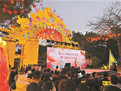 灯会以“花开越秀,遇见锦鲤”为主题,融合世界非遗、岭南文化、诗词广州、彩灯艺术与现代科技于一体,延续“白天赏花、晚上观灯”特色,一直持续到2月16日,将为市民游客带来一场独具特色的视听文化盛宴。作为新春灯会珠联璧合的另一半,越秀公园2025新春游园系列活动和广州诗词大会同步拉开序幕。漫步“诗词里的广州”,“回望越台烟雨外,万峰尽处五羊城”“五丝八丝广缎好,银钱堆满十三行”等诗句映入眼帘。千百年前诗人笔下的诗篇,激扬在越秀山下,北秀湖畔,别有一番韵味。