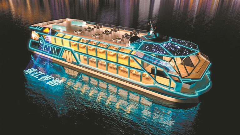 该船总长43.4米,船宽13.5米,设计航速10节,428客位,船体采用双体船型,为磷酸铁锂纯电动力推进游览客船。该船采用3D全息投影技术呈现多元化外观造型,3D全息投影是一种利用干涉和衍射原理记录并再现物体真实的三维图像,是一种观众无须佩戴眼镜便可看到立体的虚拟人物、景象的3D技术。3D全息投影技术在该船的应用,可以根据季节、景物、活动主题等元素变化的需要,设计呈现不同的外观造型,进一步丰富游客的视觉享受,展示广州独特的城市魅力。该船建成后将投入“珠江夜游”营运,有望成为夜幕下珠江的一道亮丽风景线。