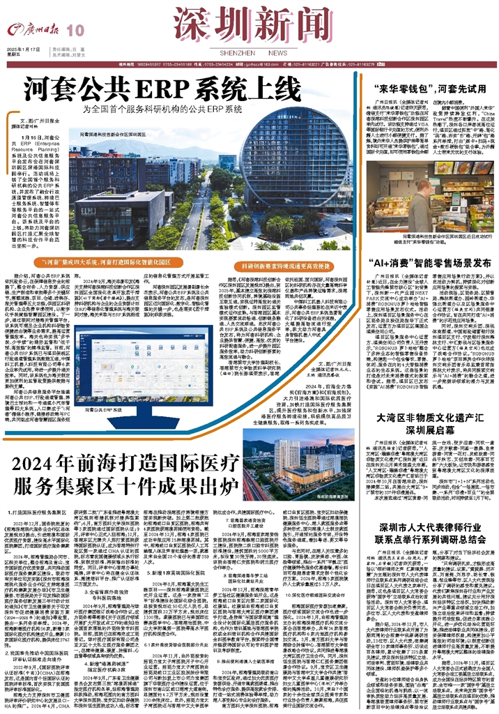 - 河套公共ERP系统上线 文、图/广州日报全媒体记者刘畅 1月16日,河套公共ERP(Enterprise Resource Planning)系统及公共信息服务平台发布会在河套深圳园区深港国际科技园举行。活动现场上线