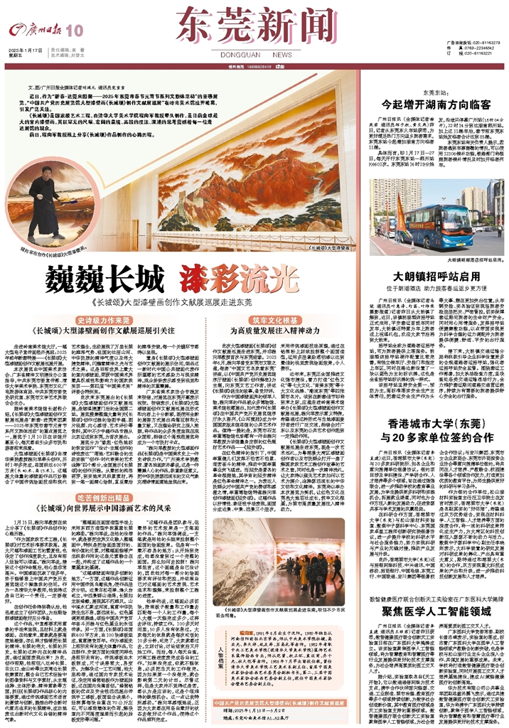 - 巍巍长城 漆彩流光 文、图/广州日报全媒体记者刘满元 通讯员莞宣宣 近日,作为“新春·进莞来团聚——2025年东莞市春节元宵节系列文旅体活动”的重磅展览,“中国共产党历史展览馆大型漆壁画《长城颂》创作文献展巡