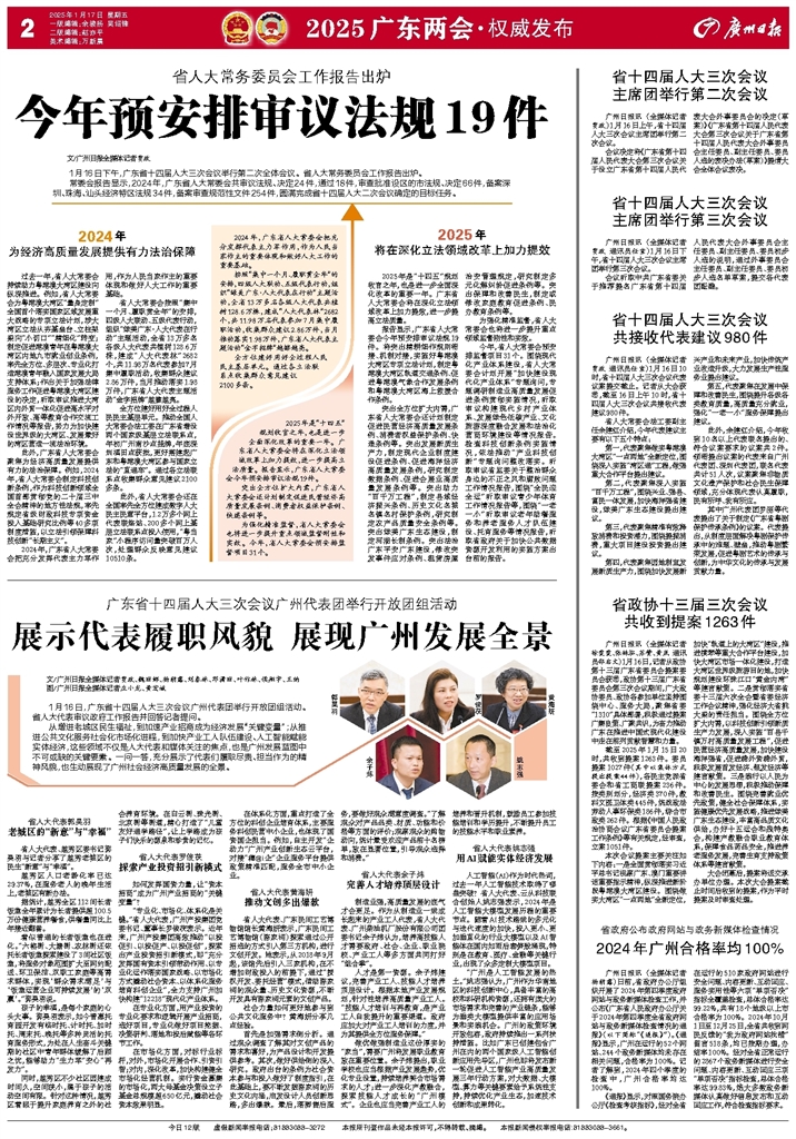 - 展示代表履职风貌 展现广州发展全景 文/广州日报全媒体记者贾政、魏丽娜、杨朝露、刘春林、邓潇丽、叶作林、侯翔宇、王纳 图/广州日报全媒体记者庄小龙、黄宏斌 1月16日,广东省十四届人大三次会议广州代表团举行开放团组活动