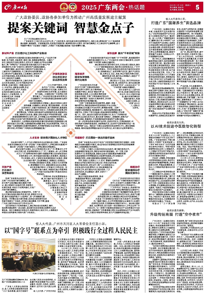 - 提案关键词 智慧金点子 文/广州日报全媒体记者黄岚 广东省政协十三届三次会议召开以来,广大政协委员、政协各参加单位坚持围绕中心、服务大局,聚焦省委“1310”具体部署提出提案、建言献策。记者梳理发现,优质医疗资源