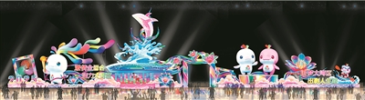 鼎盛中华:核心设计理念是传递民族自信与力量,造型上融合传统与现代,绘制祥云、瑞兽及大湾区地图等多样化符号,用先进灯光技术模拟日出、灯火与科技之光。