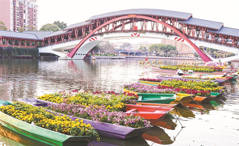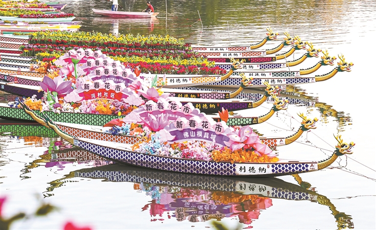 广州日报讯 (全媒体记者冯嘉敏 通讯员里宣摄影报道)临近春节,广东各地花市陆续开门“迎客”。作为佛山唯一的水上花市,1月17日晚,2025岭南新春水上花市在佛山市南海区里水镇浪漫开幕。今年的水上花市将持续到1月26日,以花市、花灯、花船为载体,展现水文共融之美。花市围绕“品艺术”“叹特色”“焕新颜”三大主题,聚焦“人文水经济”“味蕾经济”“甜蜜经济”,推出丰富多彩的年货市集、文创市集、特色巡游以及演艺活动。