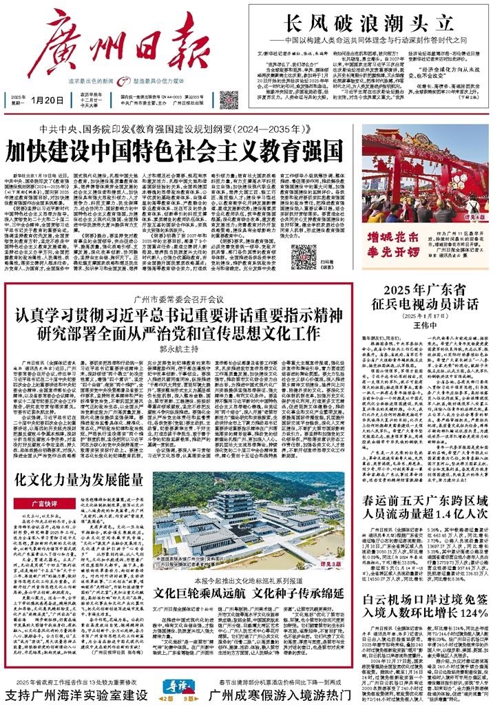 文者,贯道之器也。立足广州,无论是实现“十四五”胜利收官,还是跑好“十五五”和“大干十二年、再造新广州”的接力赛,做好宣传思想文化工作至为重要。不断开创广州宣传思想文化工作新局面,务必守正创新、积极有为。