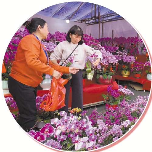 走进花市,除了必不可少的四季桔、朱砂桔外,各式鲜花让人目不暇接。五彩斑斓的兰花争奇斗艳、芬芳四溢,包括蝴蝶兰、国兰、泰国洋兰、大花蕙兰等。此外,还有雍容华贵的牡丹花、姹紫嫣红的杜鹃花、娇艳欲滴的玫瑰、典雅高洁的百合、金黄灿烂的向日葵和粉嫩可爱的郁金香等,春天的气息扑面而来。
