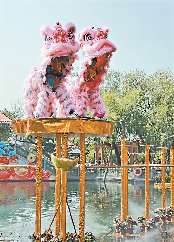 据了解,春节大年初一至大年初六,宝墨园将在荔景湖每天开展两场(上午11时—11时55分,下午3时30分—4时25分)山水实景雄狮特技展演,包括雄狮高桩走索争霸夺宝、雄狮少年攀高峰、幻彩群狮闹新春、卖货郎耍杂技、财神点名送财运等一系列表演,展现粤港澳大湾区多姿多彩的民俗文化,让广大游客在喜庆红火的年味中观赏非遗醒狮绝技。此外,年初一至年初六每天14:30—14:50,南粤苑也将举行醒狮与国潮小丑潮玩游园会,游客可在欢乐的氛围中感受民俗文化和非遗艺术的魅力。